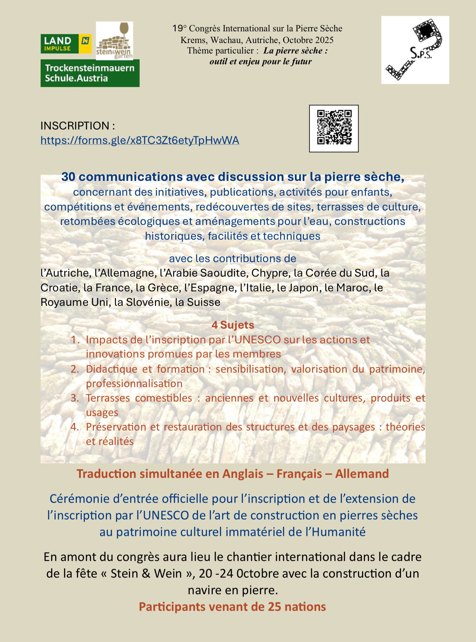 APPEL POUR LE XIXe CONGRÈS INTERNATIONAL SUR LA PIERRE SÉCHE – RÉSERVEZ LES DATES